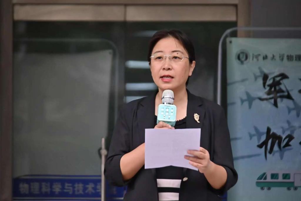 张薇发表动员讲话。首先表达了对新生的欢迎与祝贺。她强调,参训同学要以饱满的热情和积极的态度投入到训练中,以军人的标准严格要求自己、坚决服从命令。她期望大家能尽快适应大学生活。最后,她温馨叮嘱新生们务必注意训练安全、保持身心健康,顺利完成军训任务。