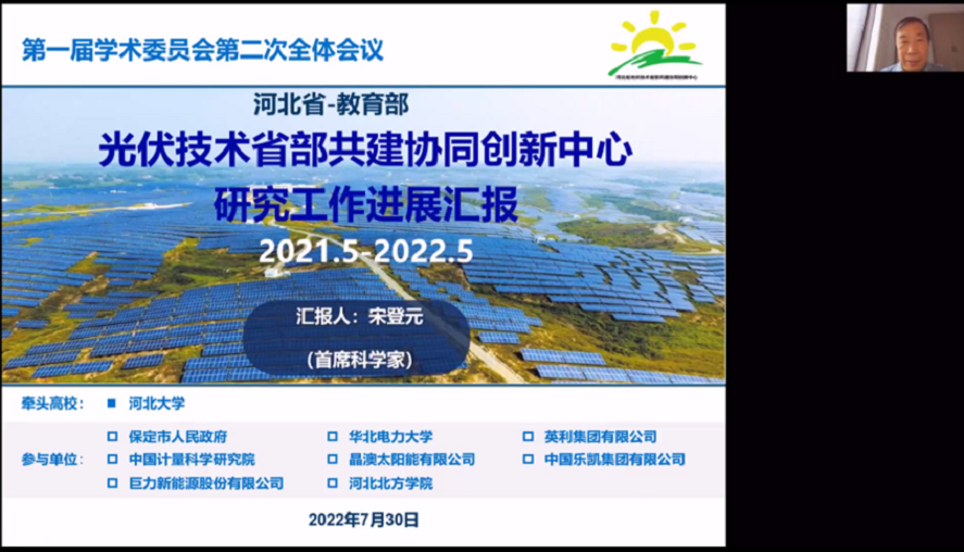 7月30日,河北省光伏技术省部共建协同创新中心(以下简称“中心”)第一届学术委员会第二次会议在河北大学召开,会议采用线上线下同步进行的形式。