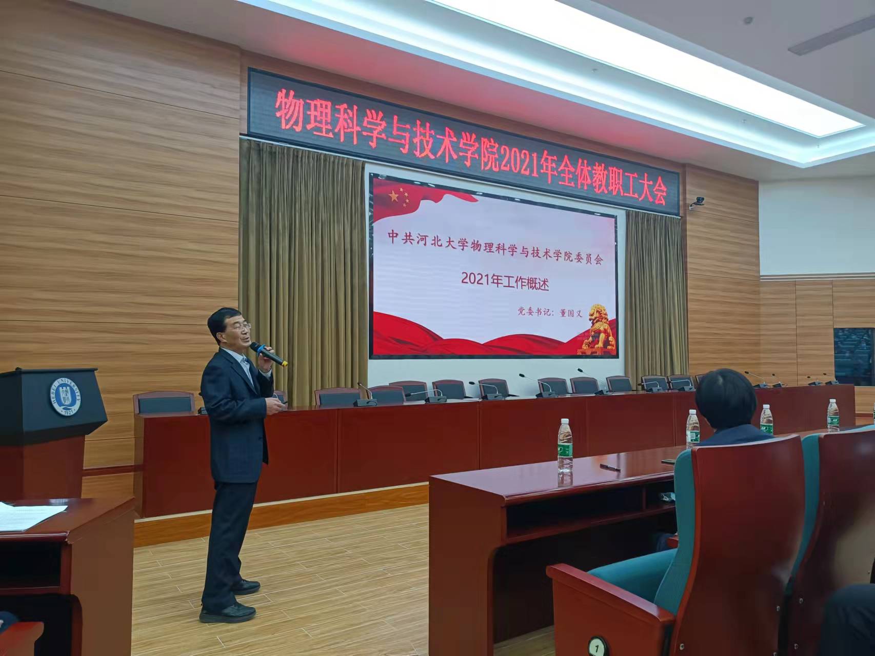学院党委书记董国义教授首先介绍了2021年度学院党委工作,详细总结了学院党委在党建引领学院中心工作、服务师生办实事等方面开展的系列工作。鼓励学院全体教师继续凝心聚力、开拓进取,以优异的成绩迎接党的二十大召开。