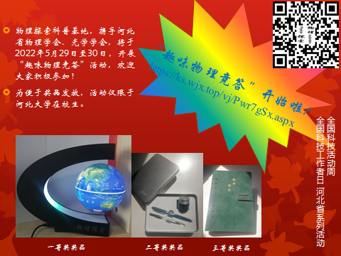 5月29日至30日,面向河北大学在校生开展了“趣味物理竞答”活动,比赛评出一等奖1人,二等奖5人,三等奖10人。竞答活动活跃了同学们的学习氛围、提高了学习热情。