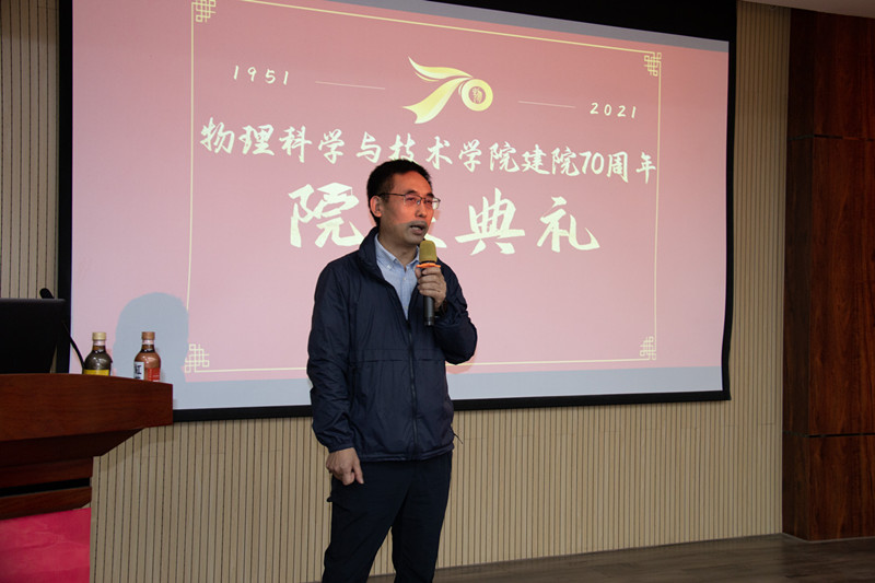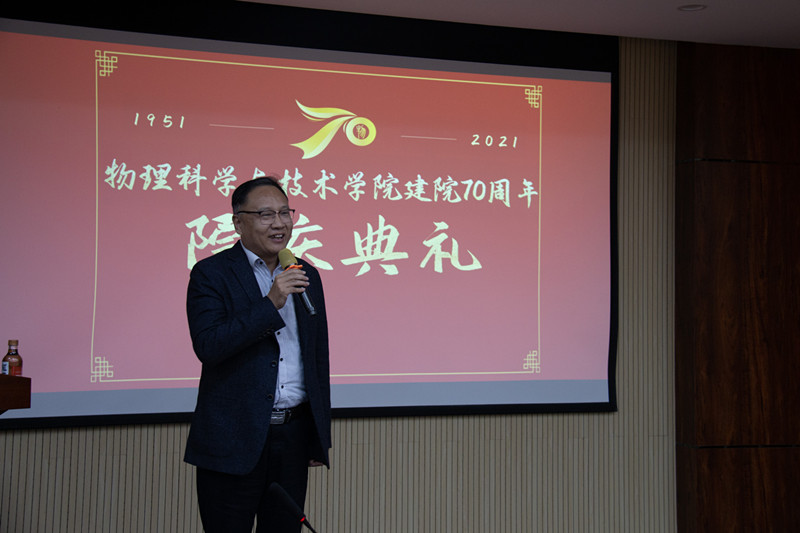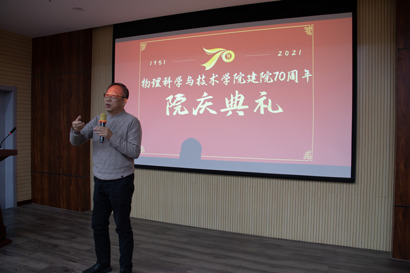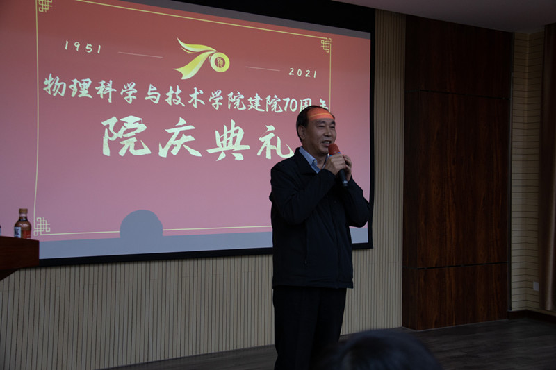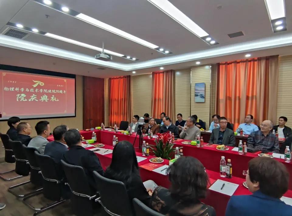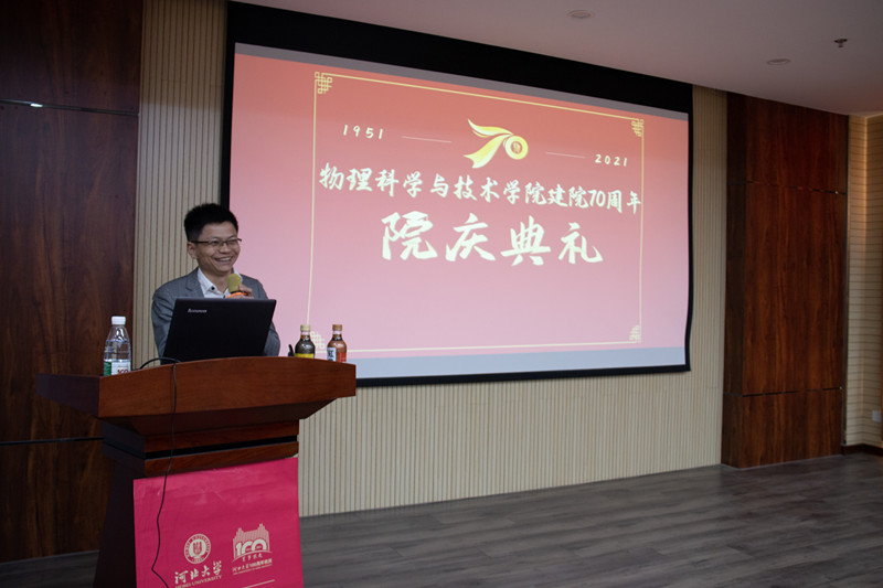 10月17日下午,学院在综合科研楼302报告厅举行了“河北大学百年华诞暨物理学院建院70周年”庆祝大会。会议以线下和线上相结合的方式进行,学院领导班子全体成员、退休教师代表、各届返校校友及学院师生代表60余人参加线下会议。