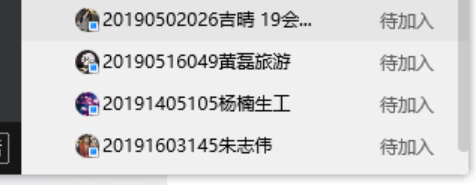 2. 上课过程:上课提前5分钟利用学习通或者群签到、群接龙等方式让学生进行签到,课后方便统计。上课开始,打开QQ群视频让学生加入,通过QQ群视频也可以一目了然有哪些同学没有进入听课。如图所示,待加入的是还没有加入听课的同学名单。