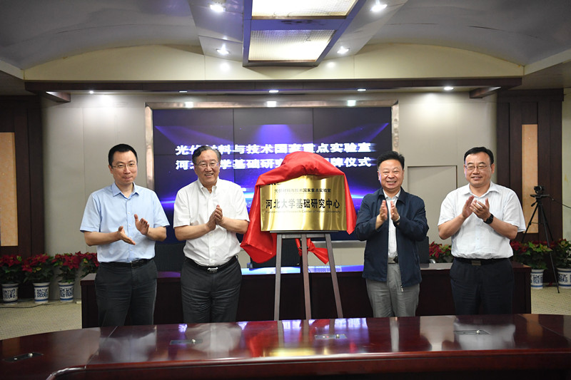 6月18日下午,光伏材料与技术国家重点实验室河北大学基础研究中心在河北大学主楼302会议室举行揭牌仪式。中国科学院副院长、中国科学院大学校长、光伏材料与技术国家重点实验室学术委员会主任李树深院士,河北大学校长康乐院士、河北省科学技术厅副巡视员蒋栋、保定市委常委罗德强、英利集团总经理郑小强出席并致辞。会议由河北大学科技处处长张金超主持。