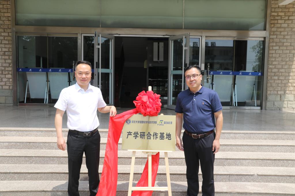 座谈交流中,张小升向用人单位详细介绍了学院的发展历程、师资力量、学科发展、人才培养、科研成果等基本情况,重点阐述了学院的学科优势、专业特点、学生就业情况等。富瑞能源总裁梁艳刚分享了企业的发展历程、企业文化、发展前景、核心产品技术特色等基本情况。双方就科研攻关、学生实习实践、就业发展、人才培养等方面的潜在合作事项与途径进行了深入交流,共同为校企合作基地揭牌。