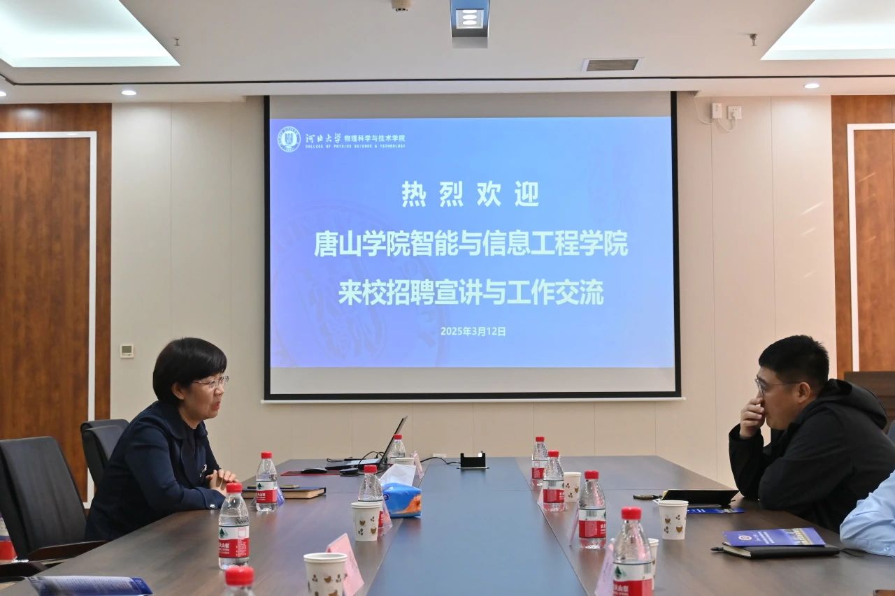 3月12日下午,唐山学院智能与信息工程学院院长王超、党总支副书记吴景新、副院长魏明哲、教学与科研办公室主任张国旭来K体育·「中国」官方网站开展工作交流与人才招聘宣讲,K体育·「中国」官方网站党委书记张小升、院长王淑芳、党委副书记张薇、党委秘书王振、专职辅导员刘晓华参加会议。