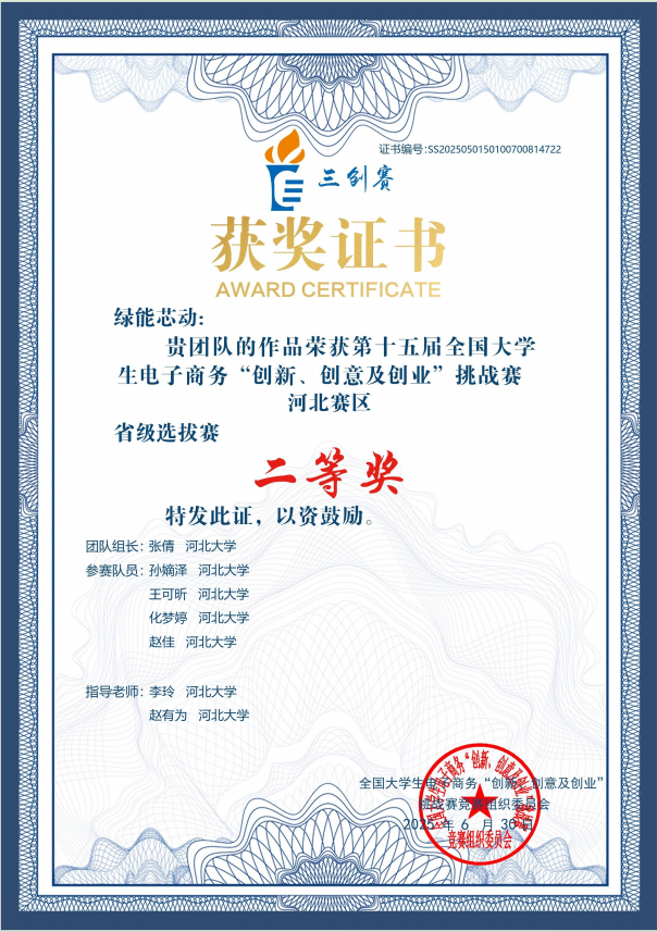在第十五届全国大学生电子商务“创新、创意及创业”挑战赛中,K体育·「中国」官方网站项目《冀地绿源——新型薄膜电池对电极材料探索者》(指导教师:李玲、赵有为)获得河北省二等奖。