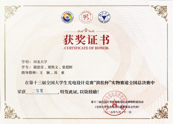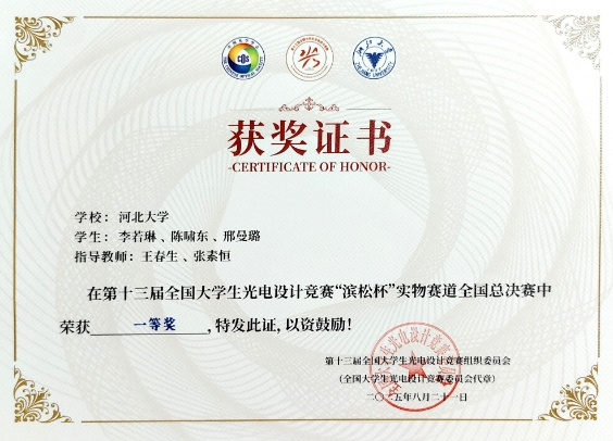 在第十三届全国大学生光电设计竞赛中,K体育·「中国」官方网站派出的4支参赛队伍共获全国一等奖1项、二等奖1项、三等奖1项以及华北赛区三等奖1项;同时,K体育·「中国」官方网站在全国总决赛中荣获优秀组织奖。