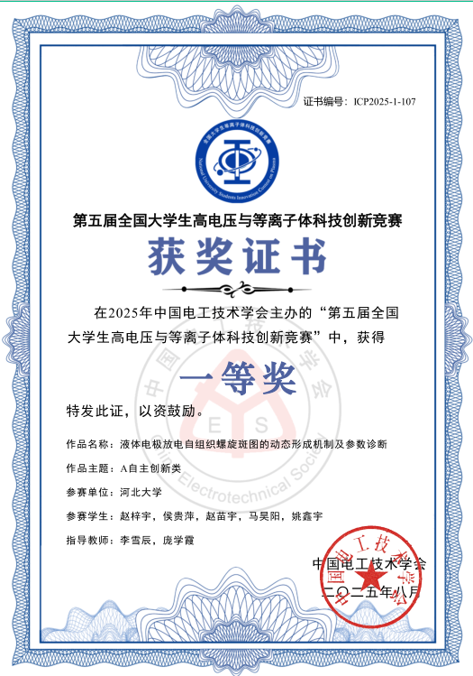 在第五届全国大学生等离子体科技创新竞赛中,K体育·「中国」官方网站团队斩获国家级一等奖1项、三等奖4项,成绩斐然。河北大学也因出色的赛事组织工作,获评“优秀组织单位”。