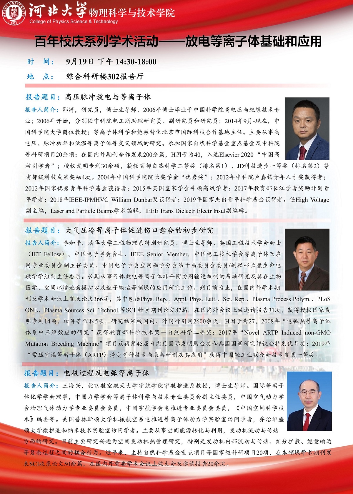1. 请学院等离子体方向相关师生、课题组成员参加,同时欢迎其他老师和学生积极参会交流。