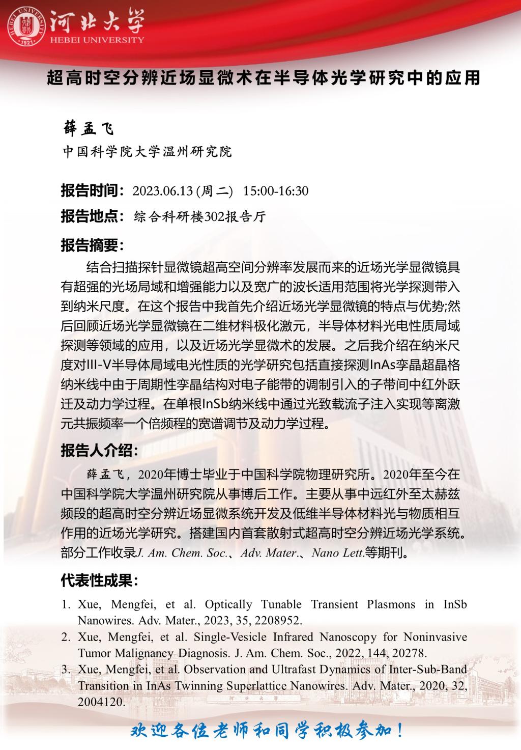 学术预告:超高时空分辨近场显微术在半导体光学研究中的应用