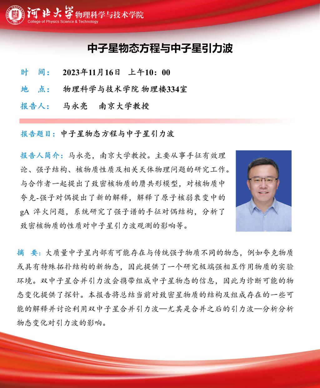 学术预告:中子星物态方程与中子星引力波