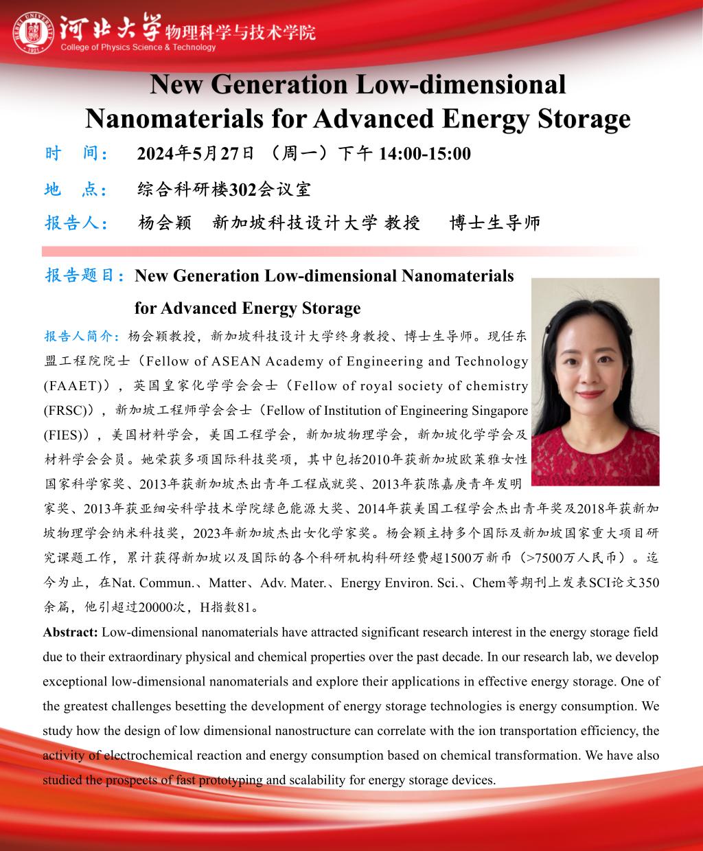 学术预告:New Generation Low-dimensional Nanomaterials for Advanced Energy Storage