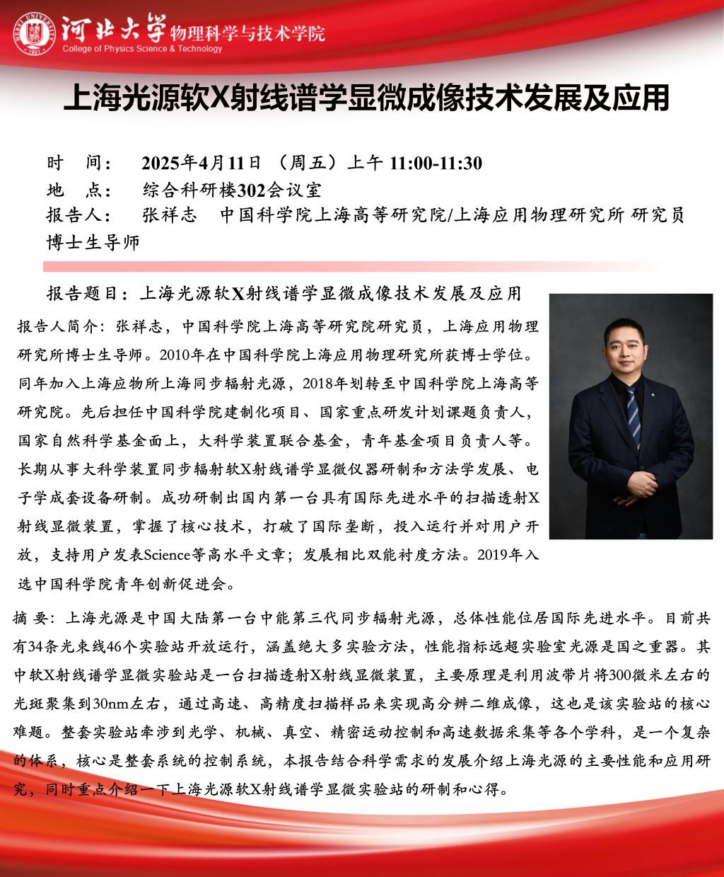 学术预告:上海光源软X射线谱学显微成像技术发展及应用
