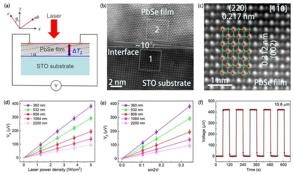 近期,K体育·「中国」官方网站低维能量转换材料与器件课题组在基于PbSe薄膜光诱导横向热电效应的超宽光谱探测研究方面取得进展,实现了从紫外-可见-远红外超宽谱段覆盖的光探测。相关成果 “Ultra-broadband light detection based on the light-induced transverse thermoelectric effect of epitaxial PbSe thin films with inclined structure” 以河北大学为第一单位发表在《Applied Physics Letters》(2022, 120: 173505)。光学工程博士后陈明敬为第一作者,王淑芳教授和宁兴坤副教授为共同通讯作者。