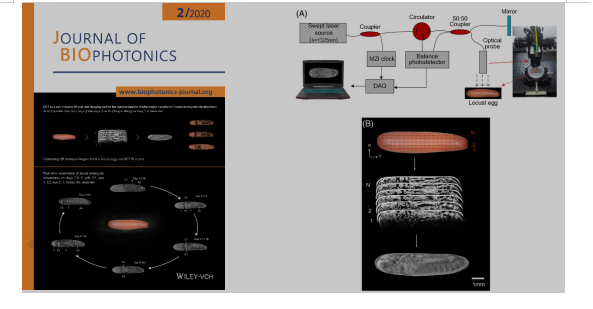 近日,K体育·「中国」官方网站光信息技术创新中心姚晓天教授团队与生命科学院康乐院士团队合作,在昆虫胚胎发育及基因干扰的光学无损检测研究领域取得重要进展。相关工作“OCT as a non-invasive 3D real time imaging tool for the rapid evaluation of phenotypic variations in insect embryonic development”以河北大学为第一单位在生物光子学领域国际知名期刊Journal of Biophotonics(February 2020, Volume13, Issue2)上发表封面文章。该工作是K体育·「中国」官方网站一直以来倡导开展学科交叉创新研究的成果之一。苏亚副教授为该论文的第一作者,姚晓天教授和康乐教授为共同通讯作者,K体育·「中国」官方网站硕士生谭昊、李文凭作为共同作者参与了此项工作。
