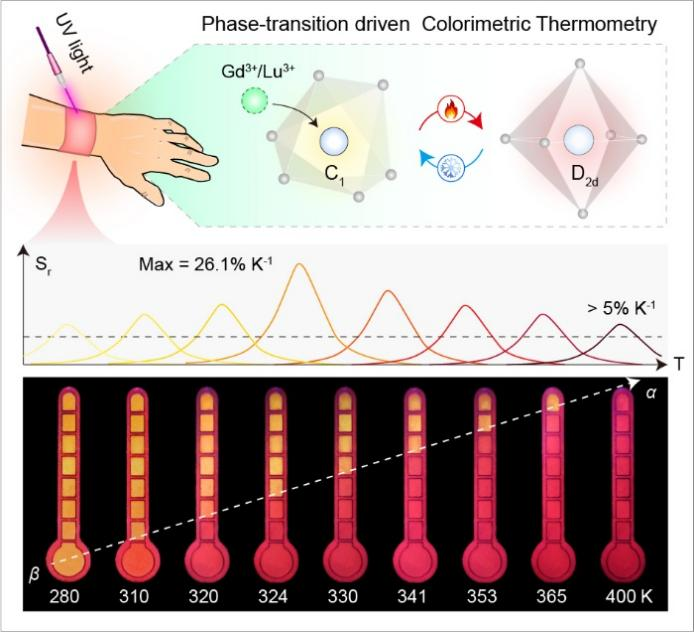近日,K体育·「中国」官方网站发光与显示课题组在荧光温度传感领域取得新进展,相关工作“Ultrasensitive Colorimetric Luminescence Thermometry by Progressive Phase Transition”以河北大学为第一单位发表在《Advanced Science》(DOI:10.1002/advs.202305241),索浩博士为论文第一作者兼通讯作者,王志军教授和与香港城市大学王锋教授为共同通讯作者。