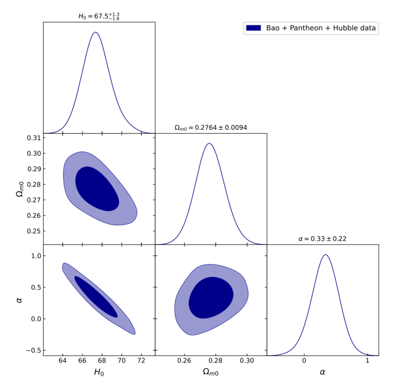 韩占文院士和杨荣佳教授团队提出了一种新的哈勃函数参数化方法,利用来自哈勃望远镜、Pantheon超新星数据以及重子声学振荡的观测数据,对模型参数进行了约束。通过这种方法,成功地验证了新参数化方法的有效性,并得到了哈勃常数和暗物质的最佳拟合值。这些结果与Planck 2018的结果一致,进一步确认了哈勃疑难的存在。