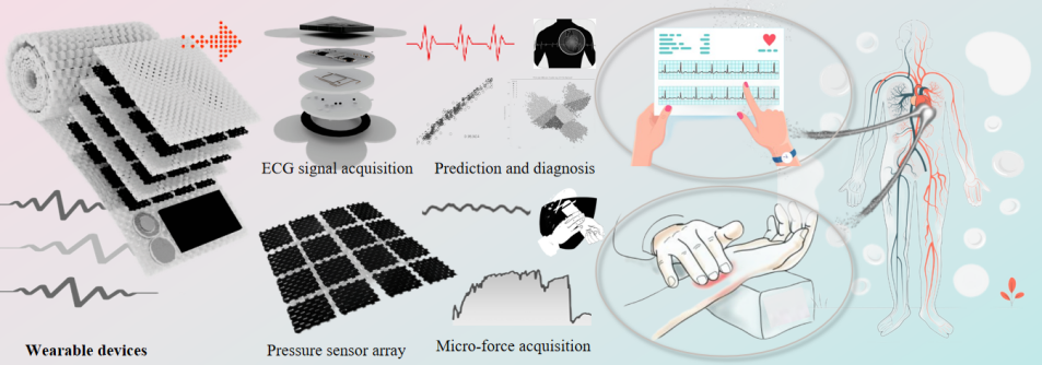 在众多可穿戴健康监测系统中,柔性自供电传感器因其轻便、高灵敏与能源自主性而受到持续关注,特别适用于老龄化社会对慢病管理、远程医疗与日常体征跟踪的迫切需求。然而,现有系统普遍面临传感灵敏度低、能量供给不稳定及信号处理智能化程度不足等瓶颈,难以实现长时间、高精度的生理信号采集与处理。当前多采用外接电源或间歇供能方案,不仅牺牲了设备柔性,还严重限制了其实时连续监测能力。近年来,部分研究尝试引入能量收集与转换模块(如摩擦电、热电、光伏等)构建自供能传感平台,虽然在一定程度上缓解了能源依赖问题,但仍存在材料匹配性差、传感与供能分离度高等关键难点。此外,传感单元多基于单一功能材料构建,无法兼顾压力、电生理信号等多模态输入,限制了其在复杂人体环境中的诊断适应性。因此,如何实现传感-供能-计算的深度耦合集成,并突破“高灵敏-宽线性-自供电”不可兼得的技术矛盾,成为推动下一代智能穿戴系统发展的核心挑战。