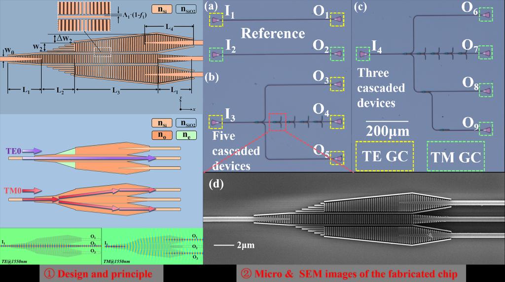 在人工智能推动数据流量激增的背景下,传统电子芯片面临带宽和功耗等瓶颈。硅光芯片利用光子传输和多维复用技术,可显著提升通信容量与能效。近日,K体育·「中国」官方网站光信息技术团队吴胜保副教授与东南大学、紫金山实验室肖金标教授团队合作,在多维复用硅光芯片核心器件方面取得系列进展。