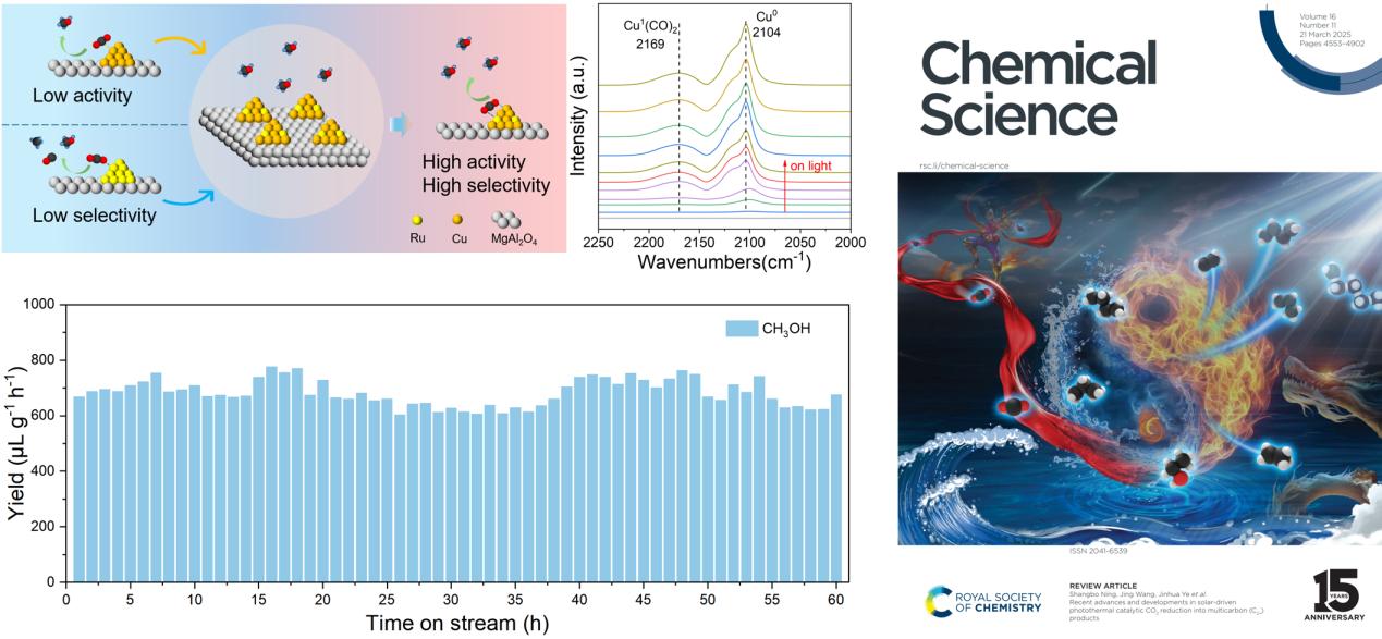 团队近期综述了太阳能驱动光热催化CO₂还原制多碳(C₂⁺)高附加值化学品的最新进展与发展趋势。系统梳理了光热催化机理、关键活性物种调控(如缺陷工程、双功能活性中心、助催化剂耦合)、以及典型反应路径(C₁到C₂⁺产品)。特别强调了通过光–热协同效应加速CO₂吸附、*CO生成及C–C偶联过程的优势,并展示了在C₂–C₄烯烃、醇类及更高碳数液体燃料合成中的最新突破。这一领域的发展不仅推动了CO₂资源化利用,也为碳中和与可持续能源转型提供了新机遇。发表于《Chemical Science》(2025, 16, 4568),硕士研究生吴秀亭和张森林为共同第一作者,K体育·「中国」官方网站宁尚波博士、叶金花教授、化学学院王静教授为共同通讯作者。